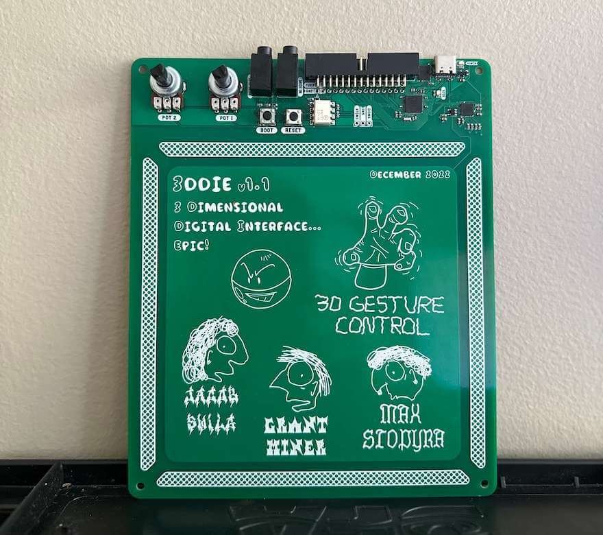 Starting in December 2022, Grant Miner, Jacob Smilg, and I embarked on a project to create an unconventional Musical Instrument Digital Interface (MIDI) controller that operates through hand gestures. Unlike conventional MIDI controllers with piano keys or velocity pads, we wanted to capture the essence of instruments like the theremin by allowing users to control virtual and hardware instruments' parameters using gestures in all three dimensions.